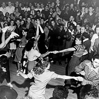 Reduce dall’ultima nottata swing del 2013, come mi accade sempre, insieme alla stanchezza e alla gratificazione derivante dalla musica e dal ballo ho portato a casa nuove riflessioni. Da tempo mi interrogo insieme ad altri amici su quale sia il motivo che ha dato origine a questa ondata di musica swing che ha investito la mia città, Torino, e molte altre in Italia. E’ automatico fare un parallelismo tra il periodo storico attuale e la grande crisi americana che ha trovato proprio nello swing la propria colonna sonora. Fu proprio alla fine degli anni venti che ebbe origine questo genere musicale che aveva le proprie radici nella musica scatenata che suonavano le piccole orchestre New Orleans e Dixieland. E proprio con il crack di Wallstreet nel 1929, lo Swing, attraverso la profonda crisi che colpì tutti anche i musicisti delle grandi orchestre, si rigenerò e si trasformò prima nella musica del 2° conflitto mondiale e poi nella colonna sonora della liberazione. Come tutto il Jazz, lo Swing ha scandito le danze di una società messa alla prova dalle crisi economiche, dal razzismo, dall’ascesa dei regimi di destra, dalle mafie, dal capitalismo spinto alla disumanizzazione, accompagnando sempre con una sottile vena malinconica “blues” i momenti di svago e di evasione che l’uomo della strada poteva permettersi. Sul parquet della sala da ballo, “dondolando” e roteando sulle note dello swing, i problemi quotidiani sembrano espulsi attraverso i pori insieme al sudore. I ballerini degli anni 40 danzavano come se fosse sempre l’ultimo giorno di vita e durante la guerra tra bombardamenti, fame , miseria, disoccupazione, era davvero possibile che fosse così.